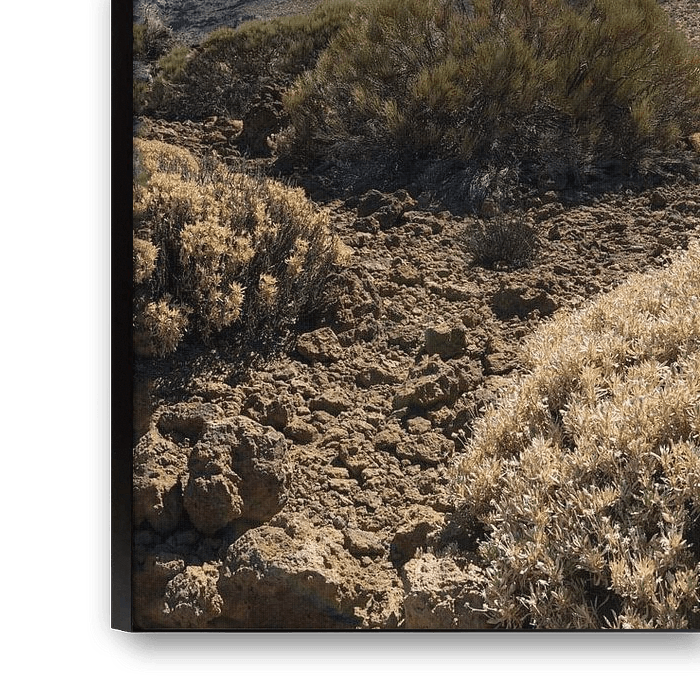 De grond is ruw, broos, vol littekens van een vurige oorsprong. En toch is er een stille schoonheid over dit alles - een balans van hardheid en kwetsbaarheid, van uitgestrektheid en fijne details. De lucht is helder, bijna transparant, en draagt de diepe adem van de bergen over het land.