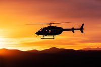 Guardian Air Bell 407GX tijdens zonsondergang over Sedona, AZ. Deze traumahelikopter van Guardian Air heeft de thuisbasis Flagstaff, AZ. USA.