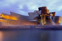Het Guggenheim Museum in Bilbao tijdens het blauwe uur.