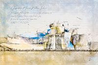 Architectuurschets uit een serie tekeningen van de mooiste en beroemdste gebouwen ter wereld. Gemaakt met potlood en aquarel op papier.