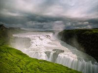 De Gullfoss waterval in IJsland, onderdeel van de gouden cirkel; Gulfoss, Geysir en Thingvellir. Doordat we heel vroeg bij deze waterval waren was het gelukkig nog niet zo druk. De lucht richting het binnenland was erg dreigend, en de zon scheen in onze rug waardoor de wolken mooi belicht werden.