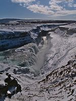 Koop de foto Gullfoss in de winterzon van Timon Schneider op canvas, aluminium dibond, (ingelijste) fotoprint, behang en ArtFrame, op maat geprint in Fine-Art kwaliteit.