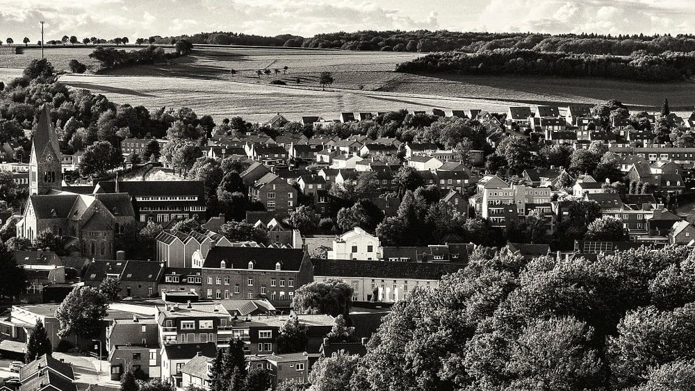 Omgeving van het dorp Gulpen in het Zuid-Limburgse Heuvelland gezien vanaf de Gulperberg (Nederland).