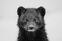 Dit indrukwekkende zwart-wit portret van een veelvraat legt de woeste vastberadenheid en opvallende kenmerken van dit zeldzame dier vast. De fijne details van de dichte vacht en de doordringende blik geven het beeld een bijzondere diepte en intensiteit. Dit kunstwerk is ideaal voor natuurliefhebbers en kunstverzamelaars en geeft je woon- of werkruimte een krachtige en betoverende uitstraling.
