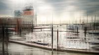 Abstracte fotokunst en experimentele fotografie Nicole Holz | Van fotografie naar abstractie: een hedendaagse fotografische interpretatie van het stedelijk landschap als verhalende conceptuele kunst. Hier: Hamburg Sporthafen, centraal gelegen in het hart van de stad aan de Elbpromenade, vlakbij Landungsbrücken en HafenCity, met uitzicht…
