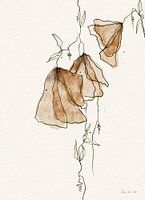 Digitaal getekende en geschilderde aquarel met lijn van geabstraheerde, hangende bloemen.
