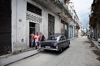 HAVANA, CUBA Straatscène met kleurrijke gebouwen en oude Amerikaanse auto in Havana van de binnenstad