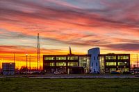 Zonsondergang in Middelharnis met de RABObank als achtergrond
