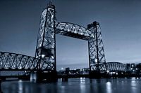 Zwart/Wit versie van de verlichte brug de Hef te Rotterdam aan het begin van de avond.