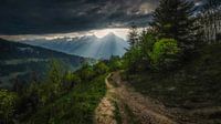 Adembenemende lichtsfeer kort voor een hevig onweer in de Zwitserse Alpen.