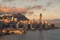 De rijzende zon verlicht het eiland Hongkong met Victoria Peak