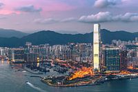 West Kowloon bij zonsondergang, Hong Kong