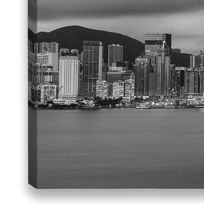 Zwart-wit panorama van Hongkong bij zonsopgang