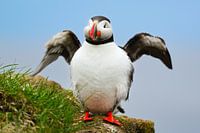 Blijkbaar hebben puffins humor want ze waren onderling aan het kwetteren todat dit exemplaar ging schudden van het lachen.