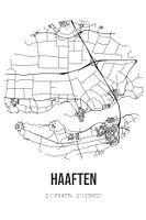 Zwart-witte landkaart, stratenplan of plattegrond van Haaften. Haaften is gelegen in de Betuwe, in de gemeente West Betuwe, provincie Gelderland. Op de stadskaart zijn alle openbare wegen in Haaften opgenomen. Verder is de kaart voorzien van de coördinaten van het centrum van Haaften.