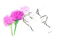 Haal diep adem en ontspan is een combinatie van inkttekening en aquarelschilderij van kunstenaar Karen Kaspar. Een schattige kat snuffelt aan roze anjerbloesems. Het katje heeft zijn ogen gesloten en lijkt glimlachend te genieten van de geur van de bloemen. Haal diep adem en ontspan. De zwarte minimalistische inkttekening van de kat op…
