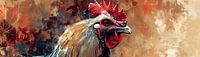 Haan Schilderij - Dit haan schilderij toont een krachtige en opvallende afbeelding van een haan in een zeer dynamische en abstracte stijl. Het gezicht van de haan, met een intens en gefocuste blik, komt prominent naar voren tegen een achtergrond vol wilde penseelstreken en rijke textuur. De veren van de haan zijn weergegeven in een…