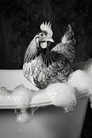 Deze originele badkamerfoto is een echte blikvanger! Met een lachende haan die geniet van de rust in zijn bad, brengt het charme en humor in elke moderne badkamer. De zwart-wit fotografie benadrukt de tijdloze elegantie, terwijl de scène zelf opvalt tussen de grappige badkamerfoto's. Dit werk is ideaal voor het ontwerp van een toilet of badkamer en herinnert eraan dat dieren ook toiletmomenten kunnen hebben. Deze moderne serie badkamerfoto's biedt een onconventionele decoratie die zowel een glimlach op je gezicht tovert als je badkamer verfraait. Met deze decoratieve badkamerafbeelding kun je een unieke sfeer creëren en inspirerende interieurideeën vinden voor je toilet.