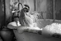 Deze originele badkamerfoto is een echte blikvanger! Met een lachende haan die geniet van de rust in zijn bad, brengt het charme en humor in elke moderne badkamer. De zwart-wit fotografie benadrukt de tijdloze elegantie, terwijl de scène zelf opvalt tussen de grappige badkamerfoto's. Dit werk is ideaal voor het ontwerp van een toilet of badkamer en herinnert eraan dat dieren ook toiletmomenten kunnen hebben. Deze moderne serie badkamerfoto's biedt een onconventionele decoratie die zowel een glimlach op je gezicht tovert als je badkamer verfraait. Met deze decoratieve badkamerafbeelding kun je een unieke sfeer creëren en inspirerende interieurideeën vinden voor je toilet.