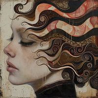 Haar Droom - schilderij vrouw, kunstzinnig portret, elegante krullen
