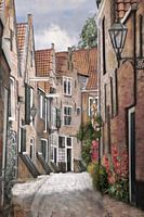 Afbeelding is digitaal gemaakt, uitgevoerd in een Aquarel sfeer van Haarlem met een zachte uitstraling, gemaakt naar een oude prent uit 1900