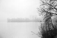 Riet aan de waterkant in het Haarlemmermeerse Bos te Hoofddorp op een mistige ochtend