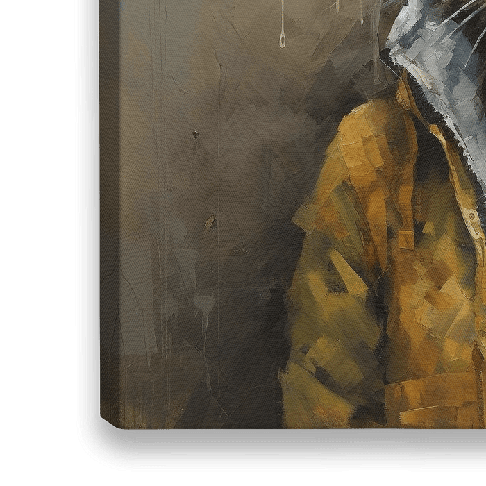 Details: haas, jas, geel, bruin, portret, realisme, kleding, antropomorfisme, dier, kunst