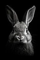 Een monochroom meesterwerk dat de spookachtige ogen en fijne details van een majestueuze haas vastlegt. De zachte contouren en betoverende gezichtsuitdrukkingen geven de kamer een rustige elegantie. Perfect voor een woonkamer, waar het gesprek stimuleert en een harmonieuze sfeer creëert.