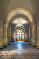 Koop de foto Hal van een verlaten hospital van Truus Nijland als print op canvas, aluminium dibond, (ingelijste) fotoprint, behang en ArtFrame. Voor jou op maat geprint in Fine-Art kwaliteit.
