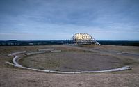 Paleis van de wind op de Noord-Duitse terril bij zonsondergang, Neukirchen-Vluyn, Duitsland