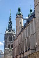 Koop de foto Halle/Saale - Rode Toren en Hausmann-torens van t.ART als print op canvas, aluminium dibond, (ingelijste) fotoprint, behang en ArtFrame. Voor jou op maat geprint in Fine-Art kwaliteit.