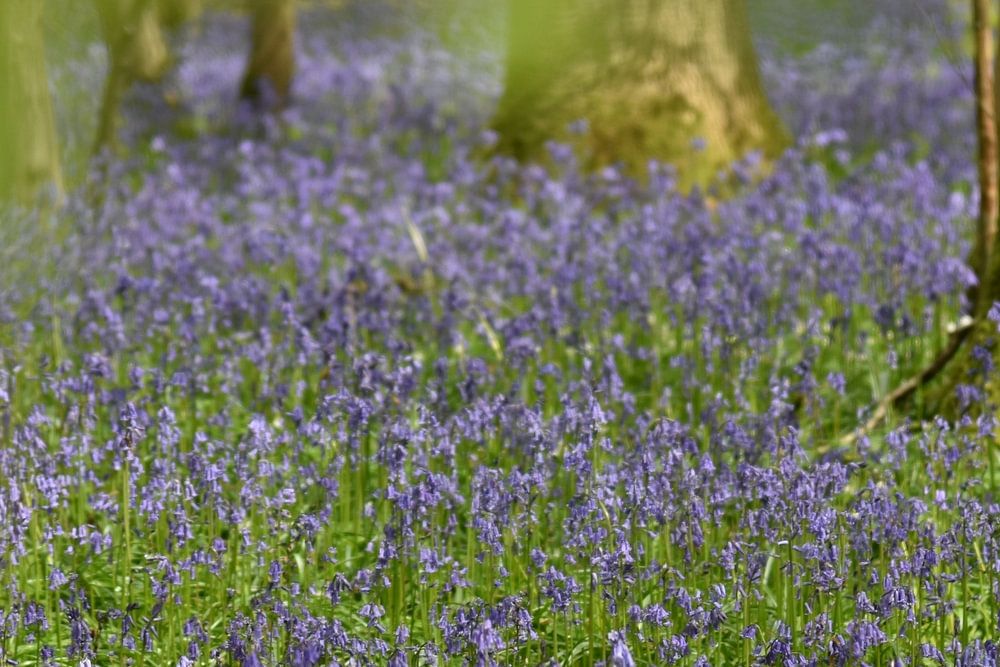 Bezaaid met oneindig veel bluebells tussen de bomen. Een prachtig plaatje, vooral op een mooie zonnige lentedag