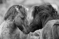 Deze twee konikpaarden werkten aan de onderlinge band. De twee vrienden begroetten elkaar met een liefdevolle knuffel