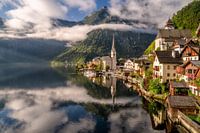 Het idyllische dorpje Hallstatt in het Salzkammergut op een vroege nazomermorgen.