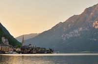 Hallstatt Oostenrijk net voor het zonnetje onder gaat.