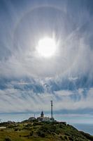 Een halo om de zon boven het meest westelijke puntje van Europa, Cabo da Roca in Portugal. Deze kaap heeft een vuurtoren en weerstation, en samen met het met mooie glooiende landschap eromheen maakte dat deze foto.