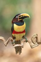 Dit is een bontgekleurde vogel, die in een deel van Zuid-Amerika voorkomt. De halsbandarassari behoort tot de toekan familie. Deze vogels zijn vooralo fruiteters, maar eten bijvoorbeeld ook grote insecten.
