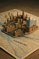 Dit 3D diorama van Hamburg legt de maritieme ziel van de grote noordelijke haven van Duitsland vast. Van de gebeeldhouwde blauwe waterwegen tot de miniatuur Elbphilharmonie, Speicherstadt en historische kranen, elk element weerspiegelt de trotse relatie van Hamburg met de zee. Het kunstwerk rijst delicaat op uit een oude kaart en verandert de geografie in een levend landschap van bakstenen pakhuizen, bruggen en havenleven. De zachte studiolicht brengt warmte naar de kopergroene daken en industriële silhouetten, die zowel de geschiedenis van de stad als haar architectonische innovatie benadrukken. Perfect voor verzamelaars van reiskunst, interieurontwerpers of iedereen die verbonden is met de charme van de haven van Hamburg, vertelt dit werk een verhaal van handel, cultuur en transformatie. De 3D-print van de stadskaart van Hamburg combineert vakmanschap met cartografie en is een eerbetoon aan een van de meest fotogenieke skylines van Europa. Ideaal als muurkunst of cadeau, het is een tijdloze herinnering aan waar land en water elkaar ontmoeten en traditie en moderniteit elkaar ontmoeten.