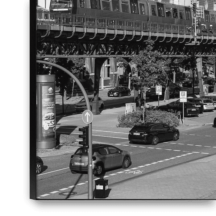 Jouw gekozen kunst als print op doek, gespannen in een aluminium frame. Snel en eenvoudig te verwisselen voor een frisse uitstraling, helemaal zoals jij het wilt.