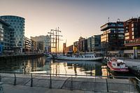 Avondsfeer in Sandtorhafen Hamburg.