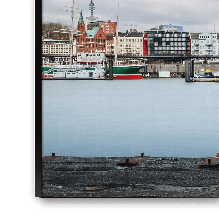 De haven van Hamburg. Op de achtergrond de skyline van Hamburg.