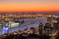 Hamburgse haven bij zonsondergang