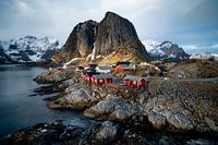 Hamnøy, Norway Lofoten. Village at the beach with mountains in the background