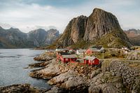Hamnøy is een van de oudste vissersdorpjes op de Lofoten in Noorwegen en staat bekend om zijn spectaculaire ligging en prachtige, traditionele rode vissershutten, oftewel rorbuer, die zich aftekenen tegen de achtergrond van imposante bergen en fjorden. Dit idyllische plaatsje op de Lofoten, op slechts enkele minuten van Reine, biedt een van de meest iconische uitzichten van Noorwegen. De sfeerfoto van Hamnøy toont de bijzondere charme van dit afgelegen eilanddorpje, omringd door ruige natuur en de diepe blauwgrijze wateren van de Noorse zee.
