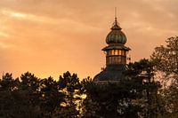 Zonsondergang met de toren van het Hanau Paviljoen in Praag