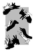 Een kleine collectie van voorbeelden voor het maken van dierenschaduwen met behulp van licht en je handen.