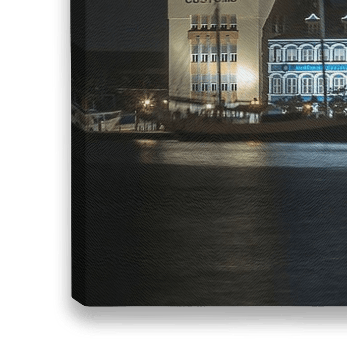 De Handelskade in Willemstad (Curacao) in de nacht. Deze nachtfoto is gemaakt vanaf Otrabanda met een lange sluitertijd zodat het water mooi glad wordt. Hierdoor komt de focus volledig op de schitterende gebouwen van de Handelskade die tevens op de UNESCO Werelderfgoedlijst staan.