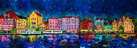 Handelskade bij nacht in Curaçao van de kunstenaar Renate Rolefes.