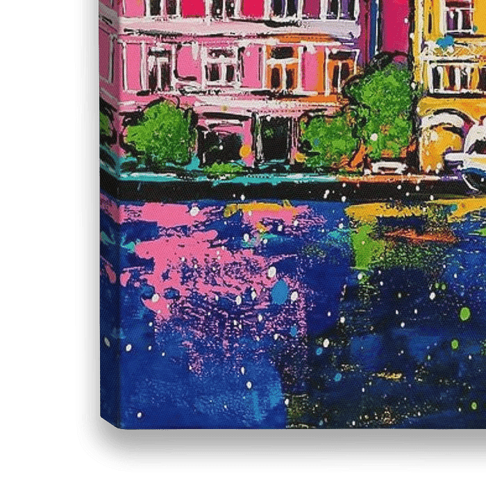 Kunst op canvas doet het goed aan elke muur. Het komt helemaal tot zijn recht bij schilderijen met scherpe penseelstreken.