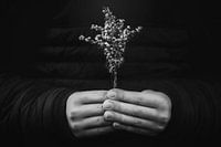 Toen ik door onze tuin wandelde zag ik dit plantje, eenzaam staan. Ik besloot er een 'kunstwerkje' van te maken.